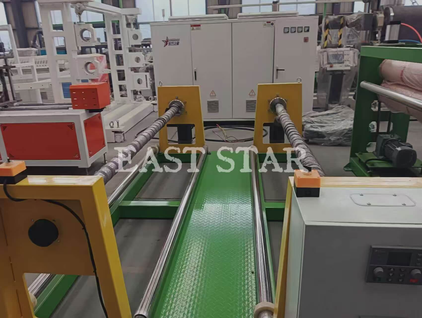 Cad go díreach a n-úsáidtear Líne Easbhrúite Creasa Bainte Aoiligh 2.4m? Táirgeann an líne táirgeachta seo rollaí bileog plaisteacha cothrom go leanúnach le leithead caighdeánach 2.4 méadar trí phróiseas leá ardteochta, múnlú easbhrúite, fuarú agus múnlú, agus foirceannadh. Ansin déanann déantúsóirí iartheachtacha na bileoga seo a phróiseáil (cosúil le druileáil agus fíodóireacht) chun criosanna iompair marthanacha aoileach a ghlanadh, a úsáidtear go forleathan i gcórais cage cruachta i dtithe sicín, lachan agus muc.