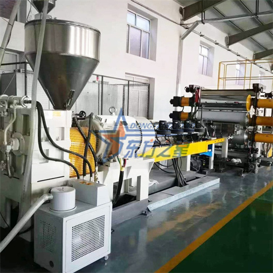 Úsáidtear Trealamh Easbhrúite Geogrid chun geocells a tháirgeadh. Is é an chéad chéim den táirge seo ná bileoga a tháirgeadh, agus ansin gearrtar na bileoga ar líne, agus ansin tá na leatháin phlaisteacha ceangailte trí