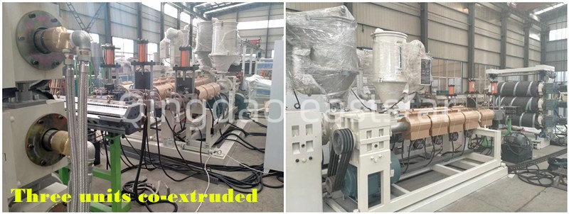 Córas dísle anLíne táirgeachta bileog comh-easbhrúite ilchiseal ABSglacann sé dearadh cainéal sreabhadh cineál hanger cóta, le leithead bás 2200mm agus atá feistithe le dáileoir cruinneas chun dáileadh ábhar aonfhoirmeach i ngach ciseal a chinntiú. Tá an féilire trí rolla feistithe le rollóirí scátháin-chríochnú Φ450 × 2500mm, le cruas dromchla sorcóir de HRC58-62 agus tiús chrome plating de 0.08mm. Cinntíonn dearadh il-chainéil speisialta teocht aonfhoirmeach. Úsáideann an córas rialaithe teochta sorcóir uisce íonaithe bogtha mar mheán, le cruinneas rialaithe teochta ± 1 ℃, agus tá sé feistithe le trí chaidéal uisce te 2.2KW agus trí shraith de théitheoirí 12KW chun timpeallacht teocht beacht a sholáthar le haghaidh foirmiú leatháin.