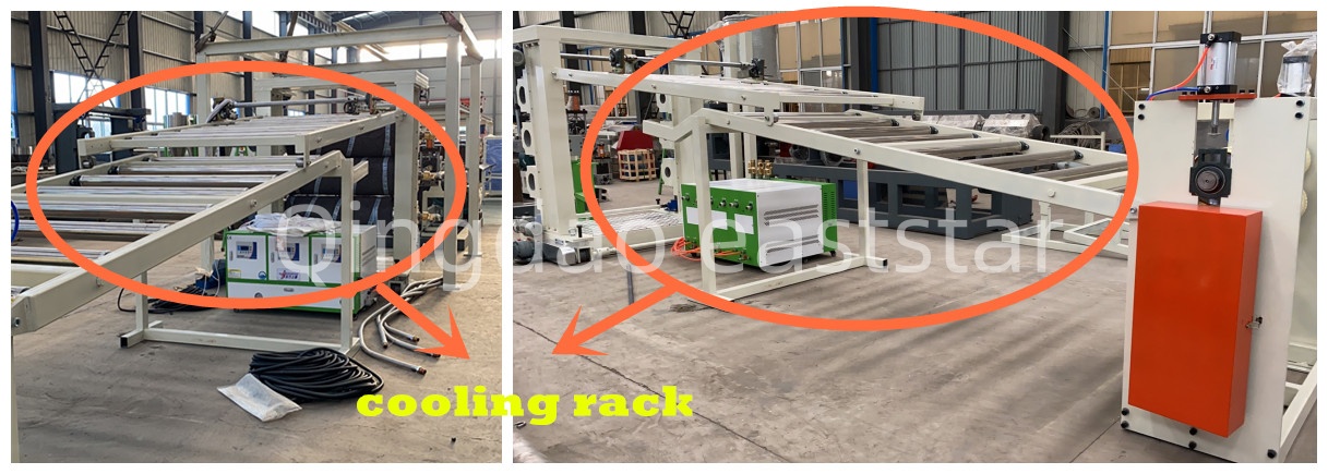 Tá an trealamh feistithe againnLíne táirgeachta bileog comh-easbhrúite ilchiseal ABSle córas beathaithe agus cúnta iomlán. Tá an t-easbhrúiteoir SJ-130 feistithe le friothálacha scriú cruach dhosmálta E-1000, agus tá an t-easbhrúiteoir SJ-70 feistithe le friothálacha bhfolús E-300, rud a chinntíonn soláthar beacht d'amhábhair éagsúla. Tá an tacaíocht fuaraithe feistithe le rollóirí cruach dhosmálta 8 méadar ar fhad agus trí ghearrthóir imeall inchoigeartaithe, rud a chinntíonn go mbeidh dóthain fuaraithe ar an mbileog agus ar na himill néata. Úsáideann an meaisín gearrtha lomadh meicniúil leictreach, atá feistithe le ionchódóir Korean Autonics, chun gearradh uathoibríoch fad seasta a bhaint amach.