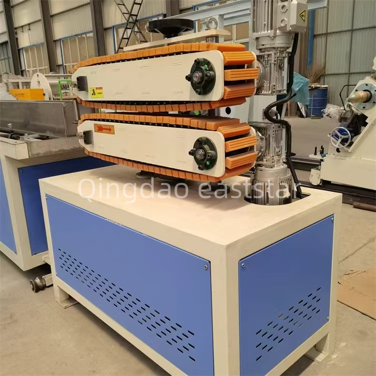 seolíne táirgeachta clúdach feadán lampadírithe ar roinnt sonraí tábhachtacha trealaimh. Ag croílár suíonn an t-easbhrúiteoir aon-scriú SJ50/30. Gnéithe sé scriú 50mm le cóimheas 30 go 1 fad le trastomhas. Tagann an scriú agus an bairille araon ó chruach nítrídithe 38CrMoAlA, rud a chabhraíonn le hábhair a leá go hiomlán, a choinníonn rudaí fiú, agus a sheachadann aschur seasta fiú le haghaidh rudaí diana mar PC, PS, agus ABS.Líne táirgeachta clúdach feadán lampapéireáil mótair AC 11 kW le tiontaire minicíochta Weichuang, mar sin fanann an luas faoi smacht beacht. Ina theannta sin, déanann folúsaitheoir uathoibríoch agus triomadóir dí-humidifier aire a thabhairt don taise in amhábhar ar nós PC agus ABS, ag cinntiú go bhfanann an leá ar ardchaighdeán don phróiseas easbhrúite. Faigheann an líne iomlán rialú lárnach trí chodanna íseal-voltais Siemens agus rialtóirí teochta Omron, rud a choinníonn gach rud ag rith go hiontaofa.