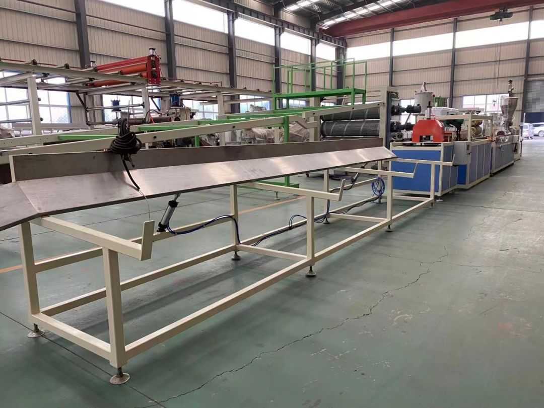 Líne Táirgthe Próifíl Úsáideann an líne táirgeachta próifíle easbhrúiteoirí dhá-scriú cónúla sraith SJSZ-65/132, ardáin múnlaithe bhfolús cruach dhosmálta, tarracóirí crawler, meaisíní comhtháite gearrtha uathoibríoch, agus racaí díluchtaithe smeach. Tá an ardán múnlaithe feistithe le caidéal folúis ardbhrú agus caidéal uisce, atá inchoigeartaithe go ceithrethoiseach. Tá an tarracóir clampáilte go haeroibritheach. Úsáideann an meaisín gearrtha uathoibríoch fad seasta lasc taistil chun gearradh go fad seasta. Tá an raca cruachta 6 méadar ar fad, déanta as cruach dhosmálta, agus iompaithe go haeroibritheach.
