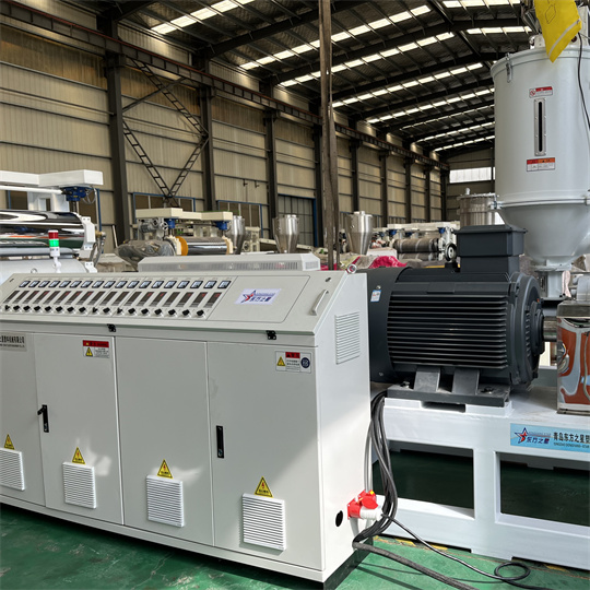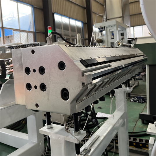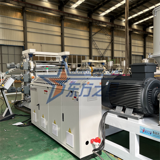 Trealamh Boird Frith-statach PVC: Is éard atá sa trealamh go príomha ná easbhrúiteoir scriú aonair 120, féilire trí-sorcóir, lúibín fuaraithe, meaisín tarraingthe sorcóir rubair, meaisín lomadh, agus