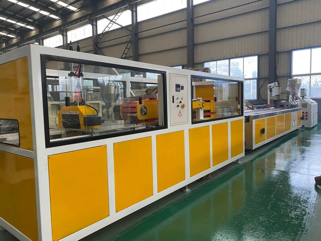 Líne táirgeachta easbhrúite urláir plaisteach adhmaid PVC - Úsáideann an líne táirgeachta easbhrúite urláir plaisteach adhmaid SJZ65/132 easbhrúiteoir cónúil cúpla-scriú, a úsáidtear go speisialta le haghaidh easbhrúite, plaisteachú agus múnlú púdar PE + amhábhar púdar adhmaid. Tá tréithe an aschuir ard aige, éifeacht plaisteachú maith agus tomhaltas íseal fuinnimh.